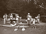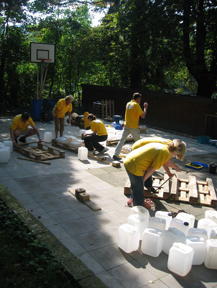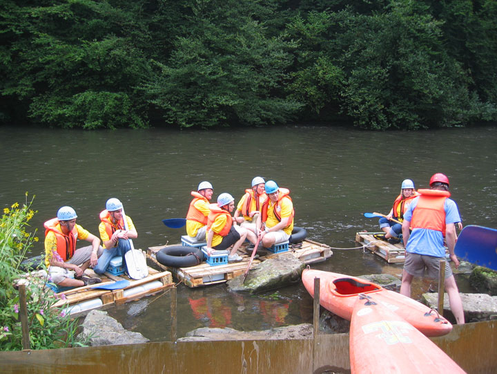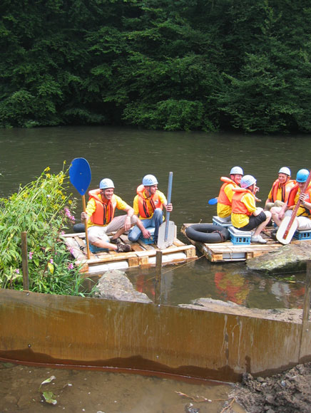 Floßbau und Floßfahrt der Steuerberatungsgesellschaft Hausmann und Partner zur Stärkung des Teamgefühls